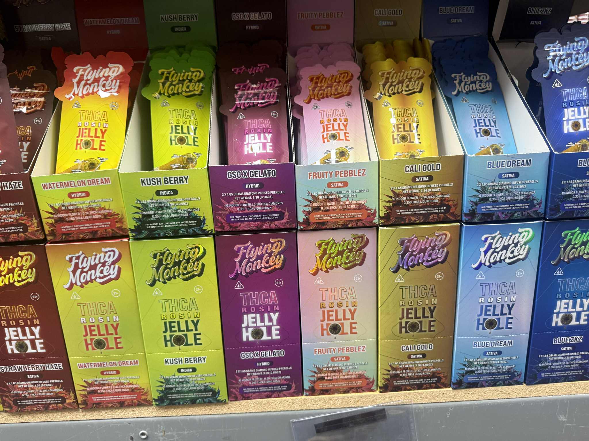 FLYING MONKEY THC-A ROSIN JELLY HOLE | 2 CT | 10 PKFLYING MONKEY THC-A ROSIN JELLY HOLES 2 COUNT 10 PACK THC-A DIAMONDS THC-A INDOOR FLOWER THC-A LIQUID ROSIN 2 X 1.65 GRAMS DIAMOND INFUSED PRE-ROLLS 1G INDOOR FLOWER 0.3 G THCA DIAMONDS 0.35 G THCA LIQUID ROSIN AVAILABLE IN DIFFERENT STRAINS !
