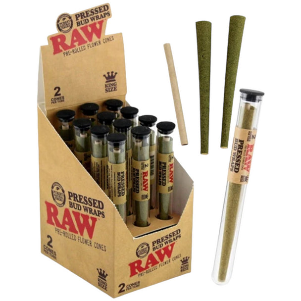 RAW PRESSED BUD WRAPS KING SIZE | 2 CTPRESSED BUD WRAPS 2 CONES PER TUBE KING SIZE